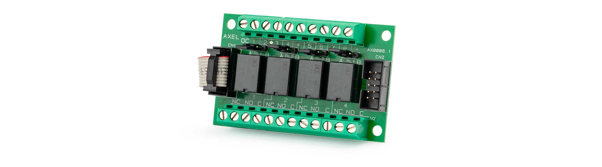 Modulo a 4 relè per la gestione delle uscite attive di tutti i dispositivi della linea AXEL.