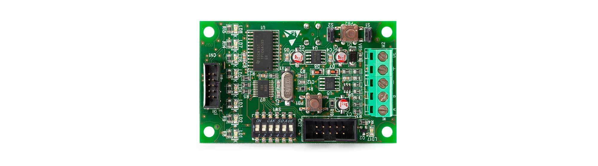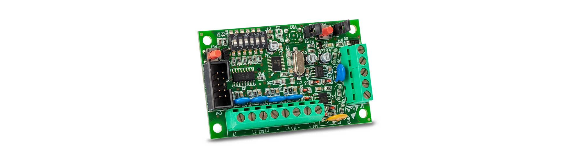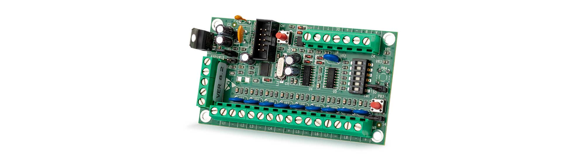 - Collegamento a morsettiera di tutte le 8 uscite attive.