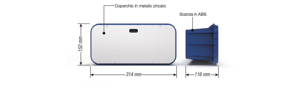 - Coperchio removibile in metallo zincato studiato per evitare l’ingresso di materiali da costruzione all’interno della scatola.